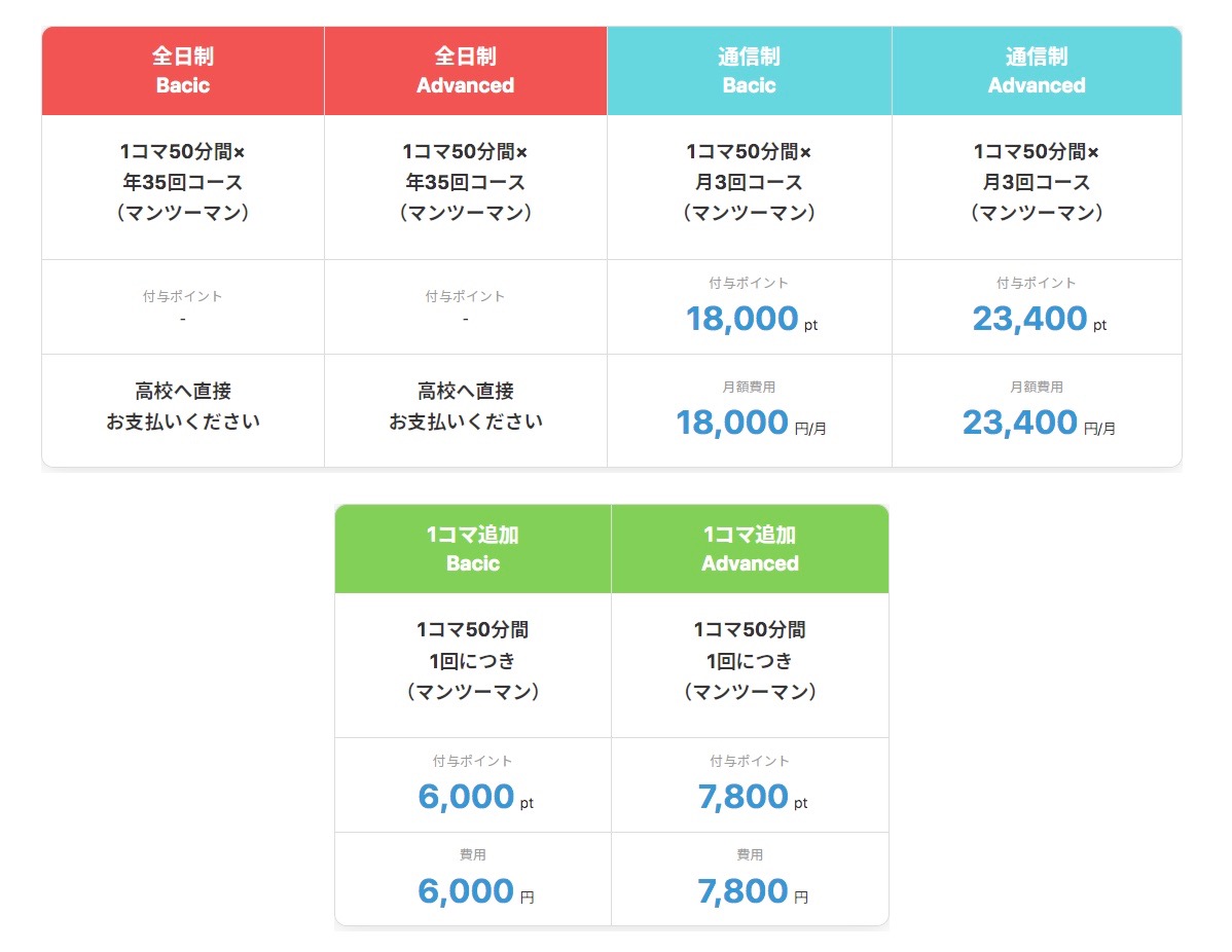 後は、通信制や全日制の高校に通う場合の料金ですが