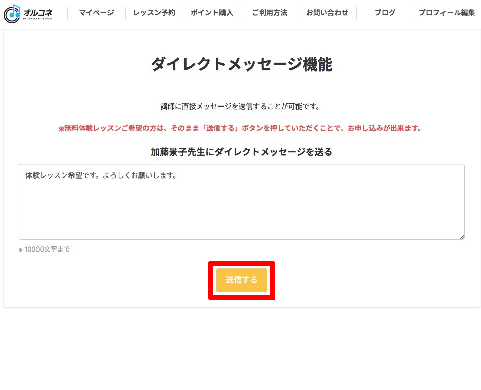 マイページに入って無料体験レッスンを申し込みします。