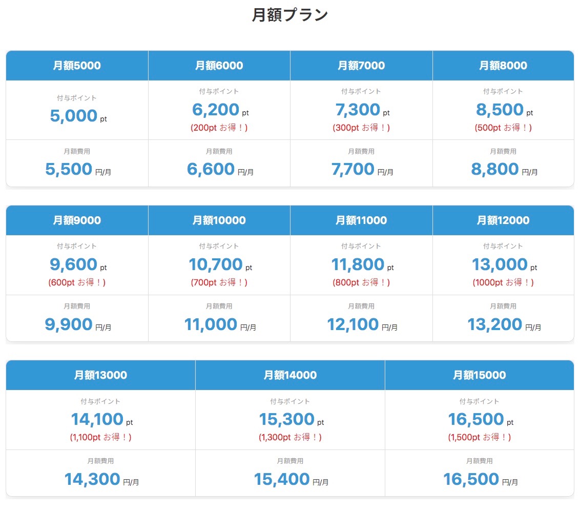 スポットプランに比べると、おまけ付与ポイントが多いですね。