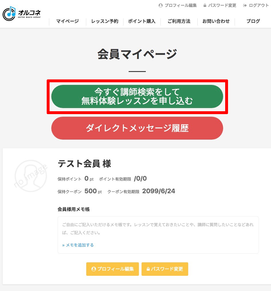 マイページに入って無料体験レッスンを申し込みします。