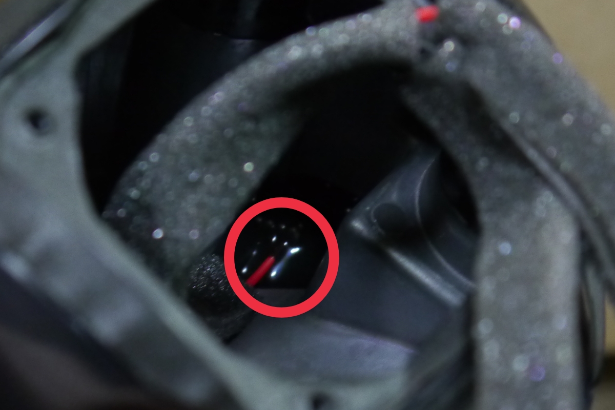 ここに穴を開けるって感じで凹みがあったので、その場所に穴を開けてラインを出しました!!