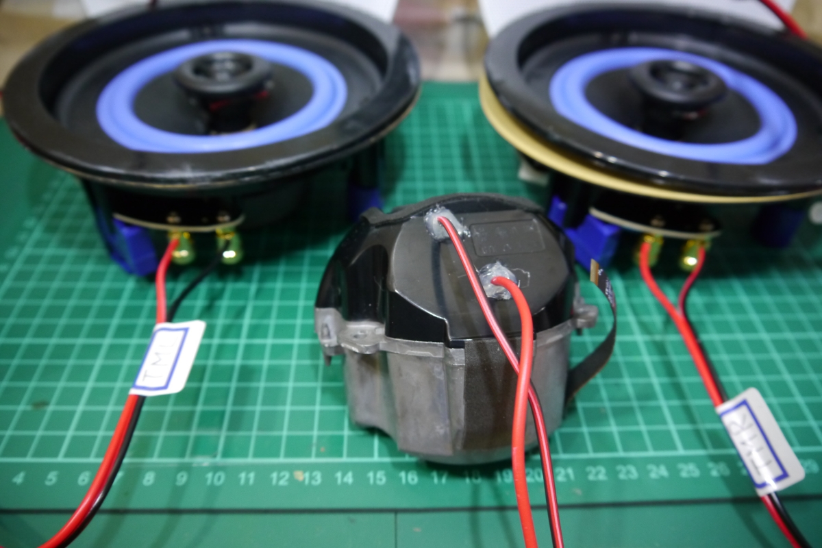アホなワタクシなので、スピーカーに直接スピーカーラインを接続したらアンプを介さずにスピーカーに直接信号を送れると思っています(100均スピーカーで基盤除去で確認済み)。
