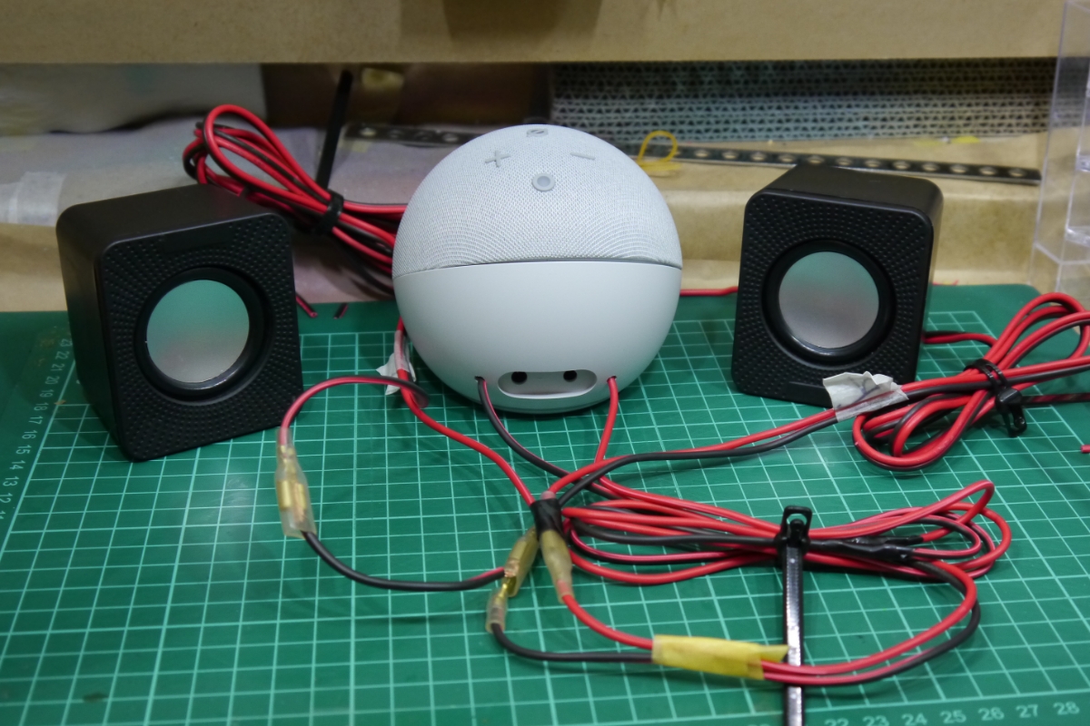 この後の実験としては、EchoDotの電源を接続したままスピーカーを接続しても大丈夫か?