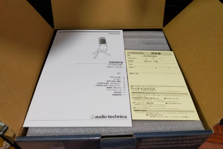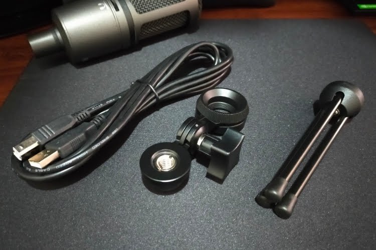 マイク以外に、マイクスタンドとUSBケーブルが同梱されています。