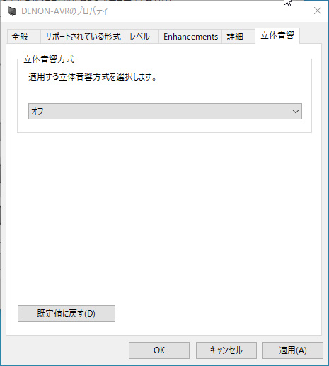 その後、「立体音響」のタブを確認してみると