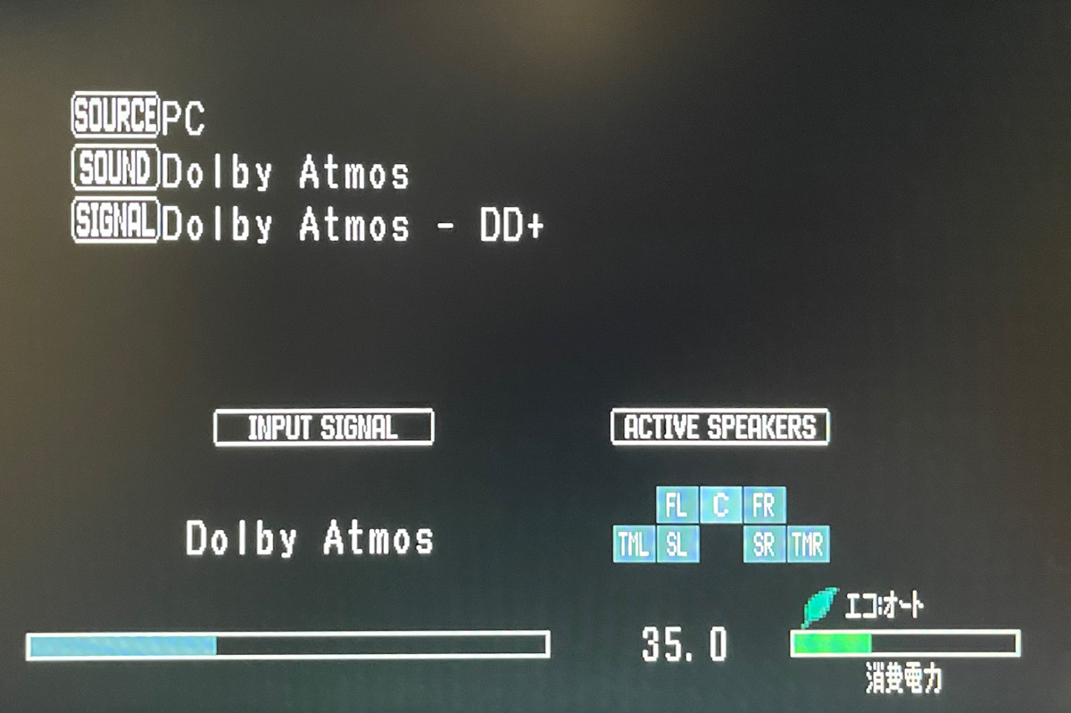 これは設定で解決するかもしれませんが、パソコンの音声出力を「ドルビーアトモス」にした状態で、AmazonMusicや普通の2chステレオBlu-ray(ライブのBlu-rayを再生しました)を再生すると、音響効果が