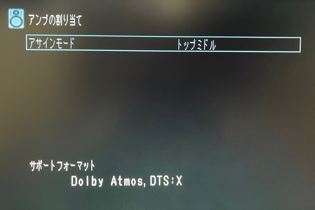 ちなみに「Audyssey」のマイクを使った自動設定をする場合は、一番初めの設定画面で、同様のアンプの割り当ての設定項目があるので、マイク測定をする前に設定してあげます。