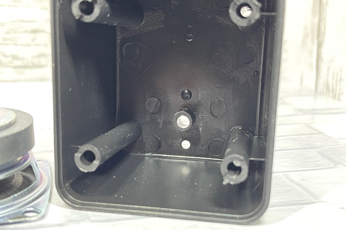もう一つのケース、アンプとボリュームダイヤルがついていた穴を同様に塞ぎます。