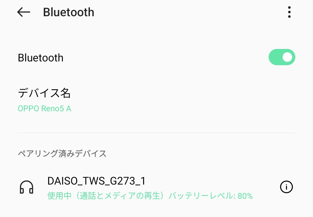 恐らくオートペアリング対応だと思いますが、ワタクシの所持しているAndroidのOPPO Reno5Aでは、一度接続を切断すると手動で接続(Bluetooth設定画面で選択)する必要がありました。