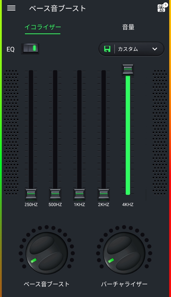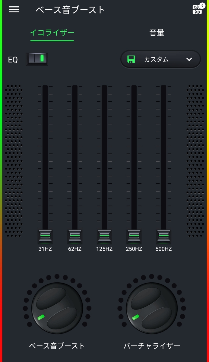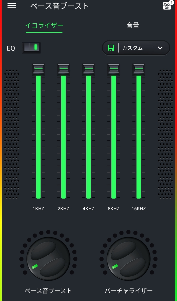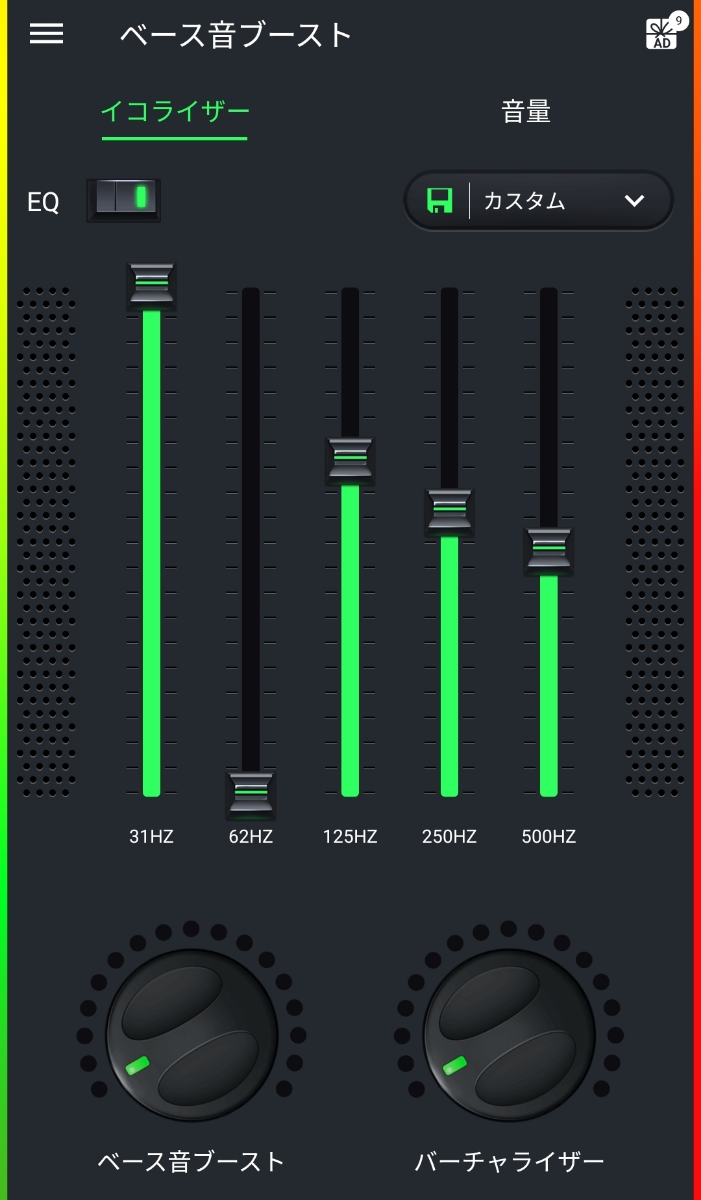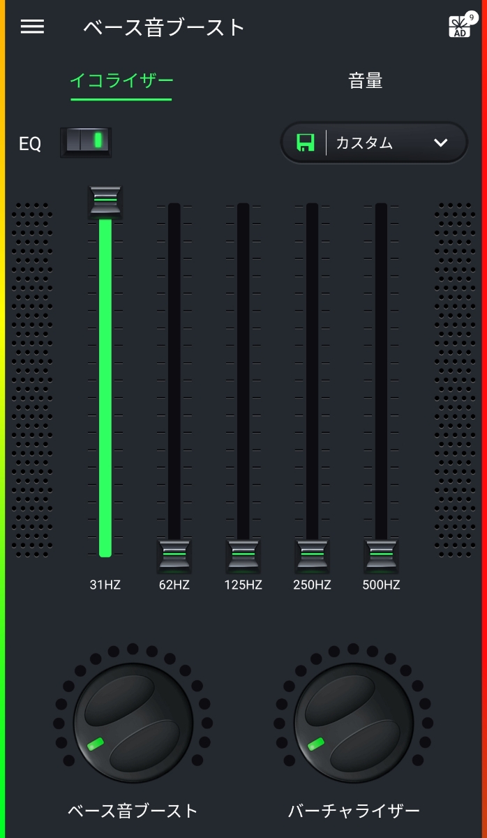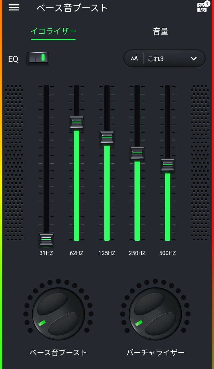 あと、こういったアプリの最大の特徴と言えば、画像下部にもあるような「ベース音ブースト」だと思います。
