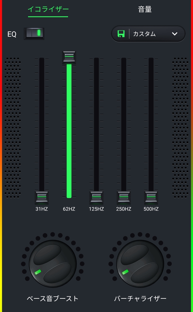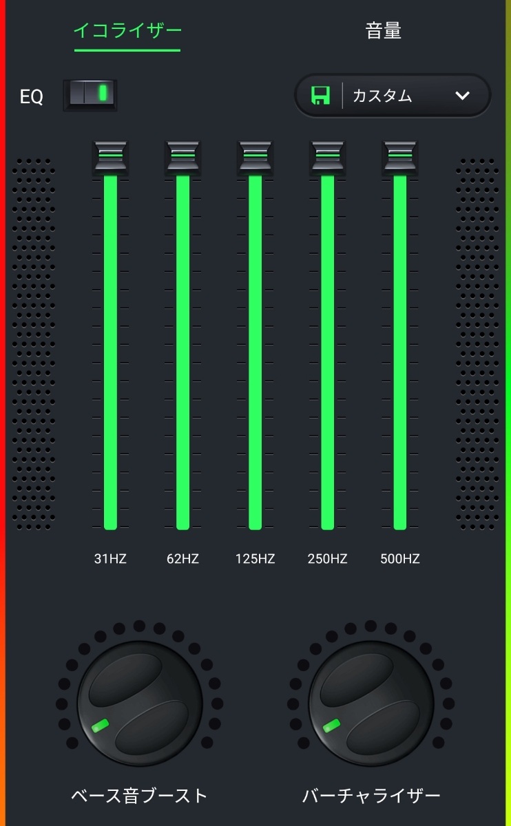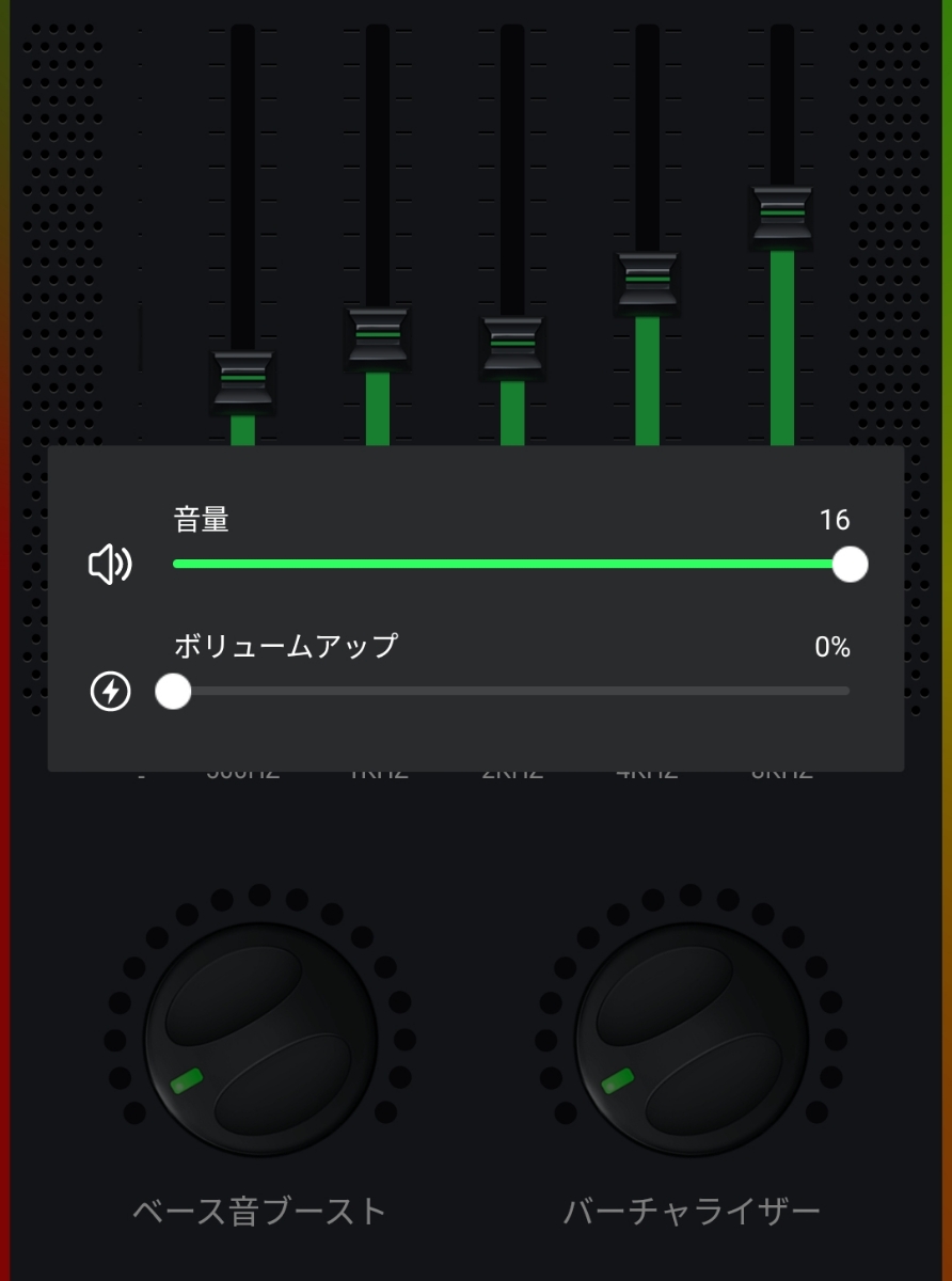 しかし、アプリの性能なのか?すべてをMaxにした時は、曲が流れ始めた時や、曲の途中で一度途切れた音域が改めて再生されるときには、設定したレベルに達するまでにタイムラグがある気がしました。