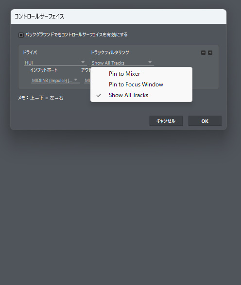 また、設定を変えると即座に反応しますが、本当の?設定が反映されるのはソフトを再起動した場合だったので、面倒でも何か設定を一つでも変更したらDAWを終了して再起動。動作を確認してダメなら設定を変えて・・・を繰り返した方が良いと思います。