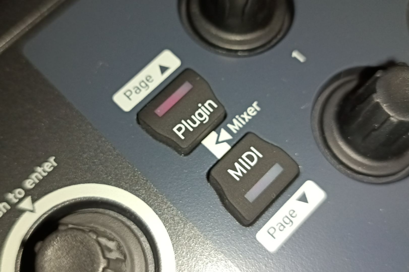 ちなみにMIDIキーボードの「シフト」を押しながら「Plugin・MIDI」を押して切り替えても反応なしでした。