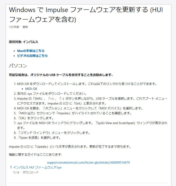 ファームウェアの更新方法として掲載されてました。