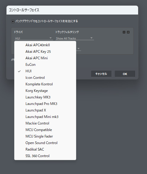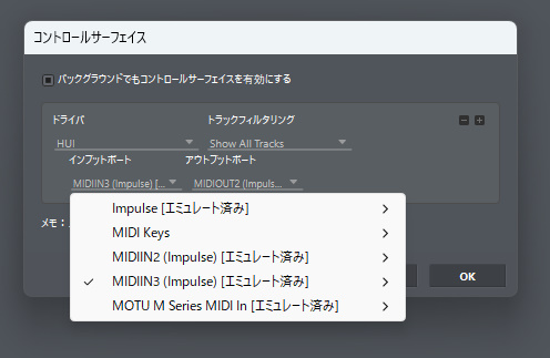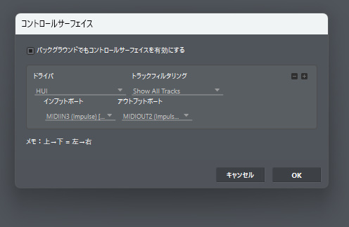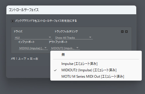 impulseは該当しないので汎用?のドライバ「HUI」を選択します。