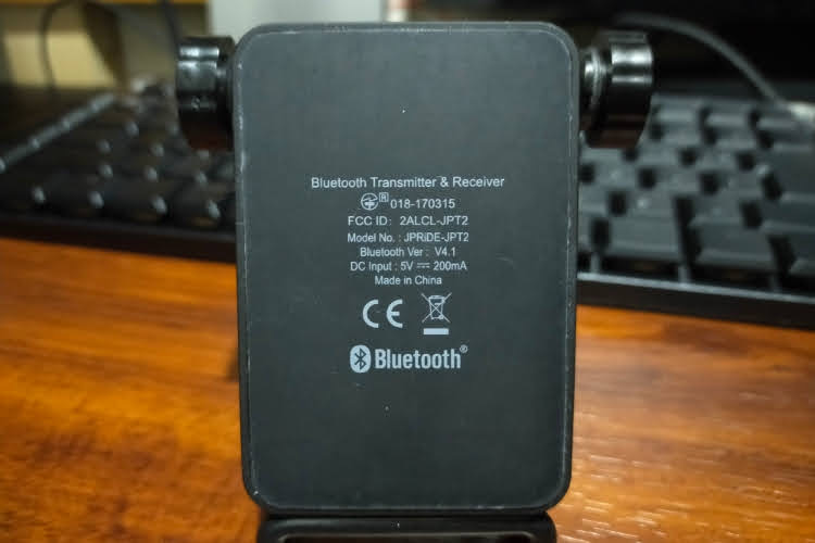 ワタクシが持っている商品は、「受ける」だけでなく「発信する」事もできるので、例えば、Bluetooth非搭載のCDプレイヤーや、TVの音声出力をAUX、もしくは光ケーブルで本機に接続。