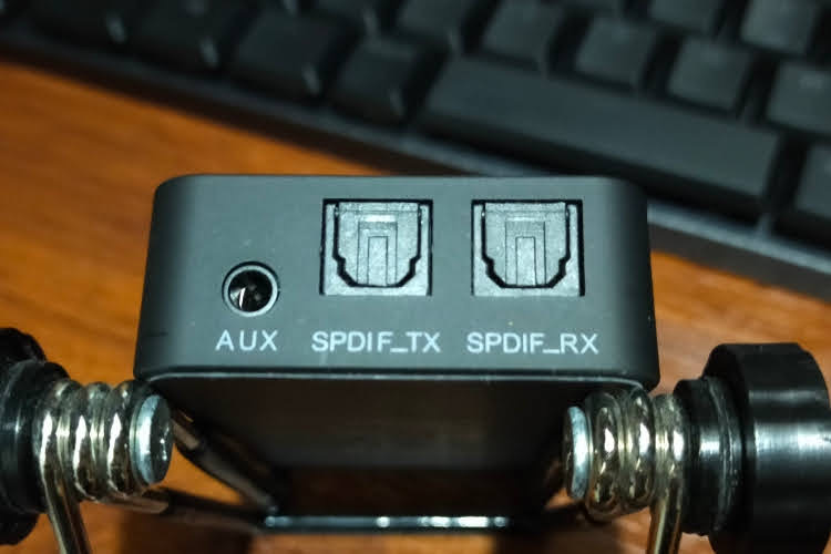 ワタクシが持っている商品は、「受ける」だけでなく「発信する」事もできるので、例えば、Bluetooth非搭載のCDプレイヤーや、TVの音声出力をAUX、もしくは光ケーブルで本機に接続。