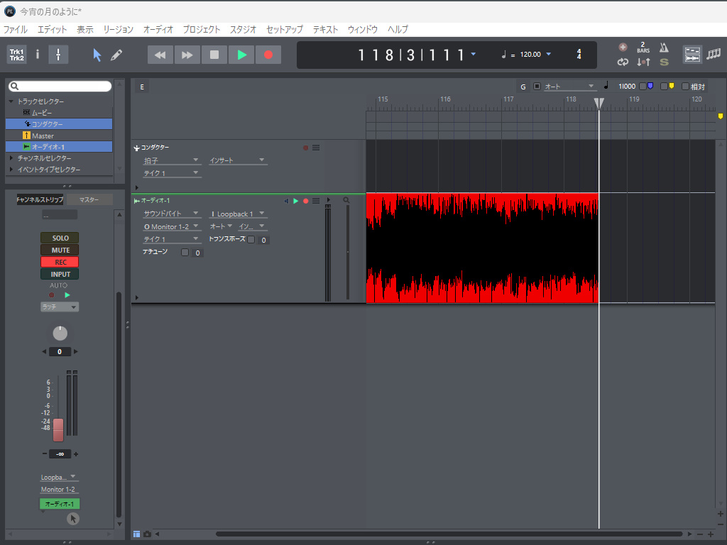 サウンドバイト?が振り切れない程度にレベルを調整してから本録音を開始します。
