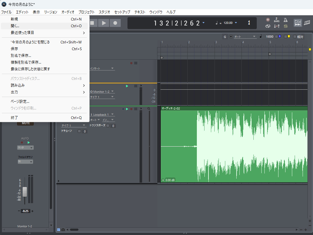 例えば、歌を何回も歌って、それを一つにまとめて(合成)して一つの音源として保存したい場合や、ギターや打ち込んだ音源を一つにまとめて「曲」として出力保存したい場合は