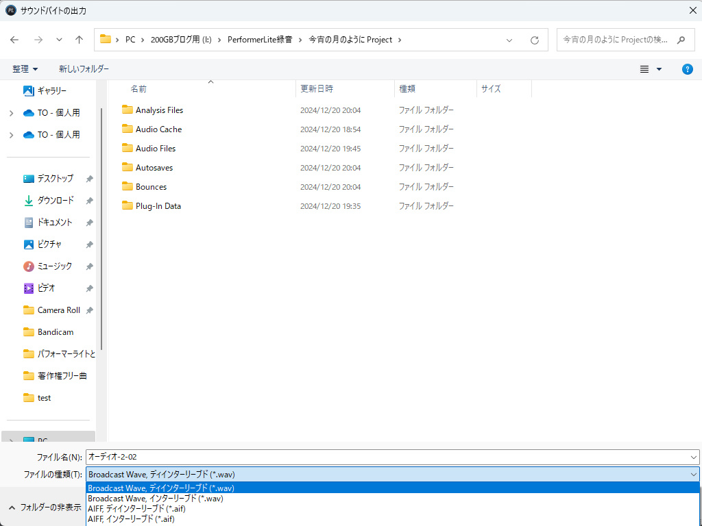 今回は「完成状態」では無いので単純に選択した「サウンドバイト」として出力します。