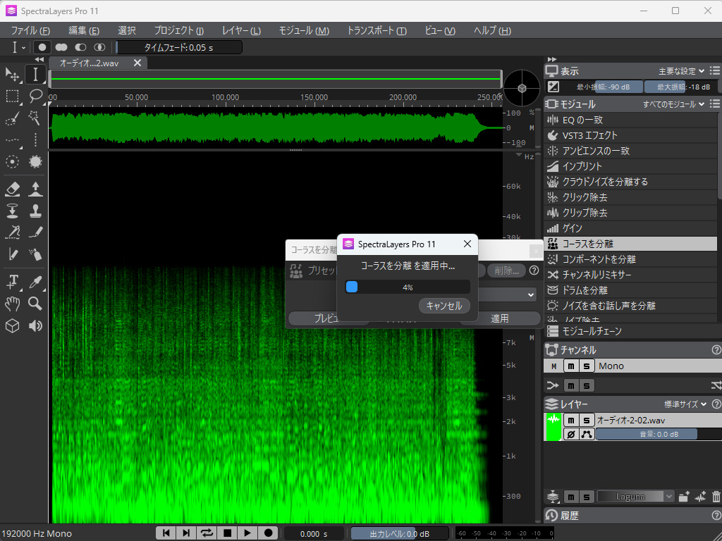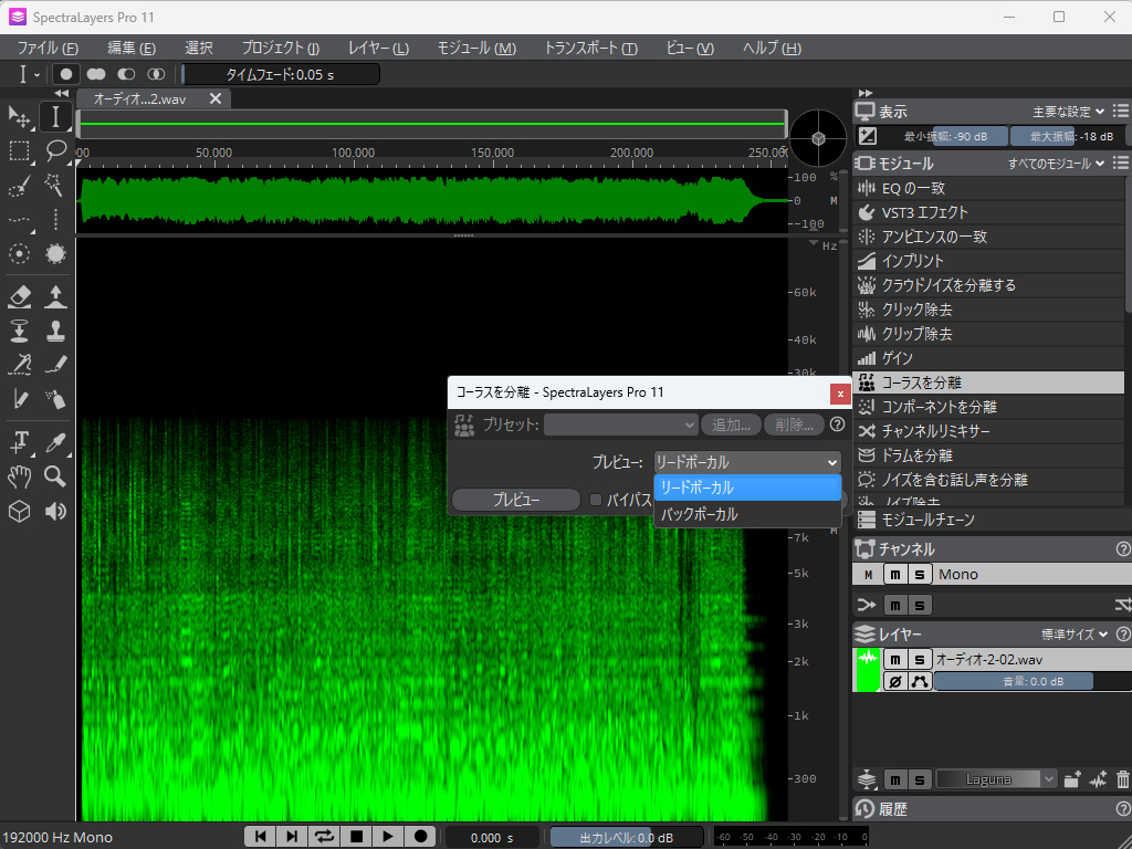 使用方法が合ってるか不明ですが目的は「ボーカルの抽出・分離」なので、それが出来たらOKです。