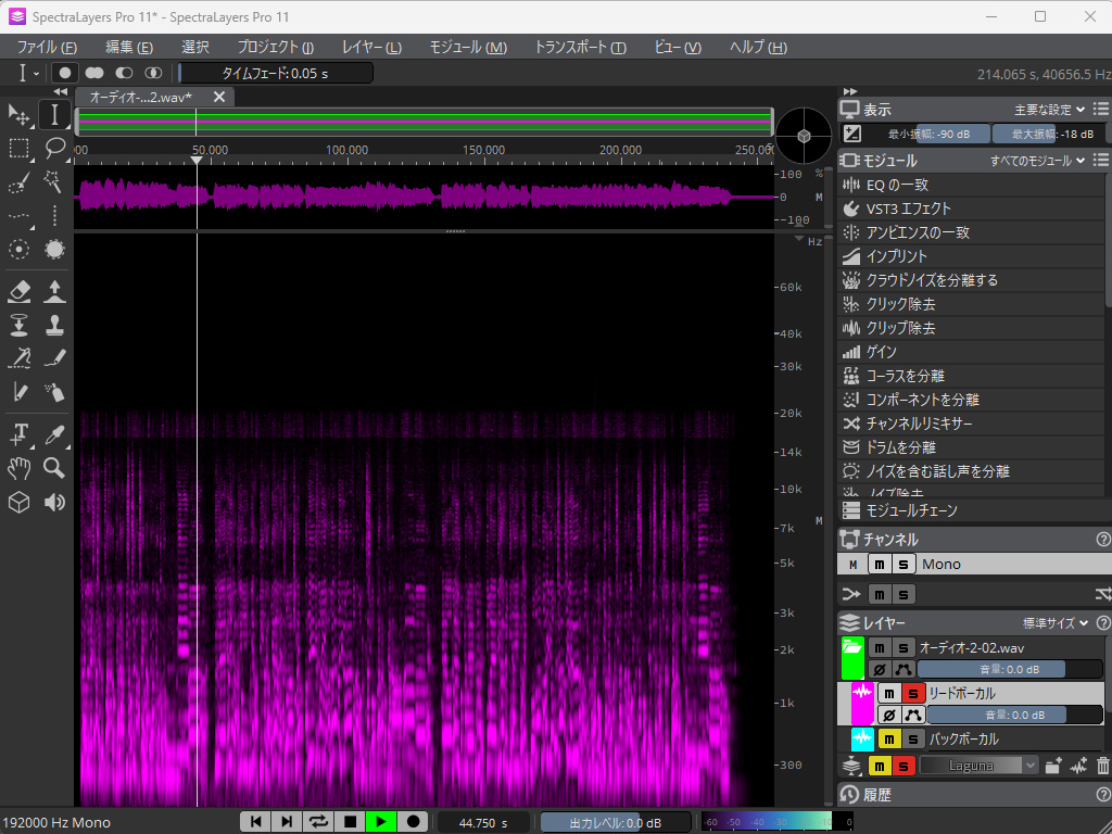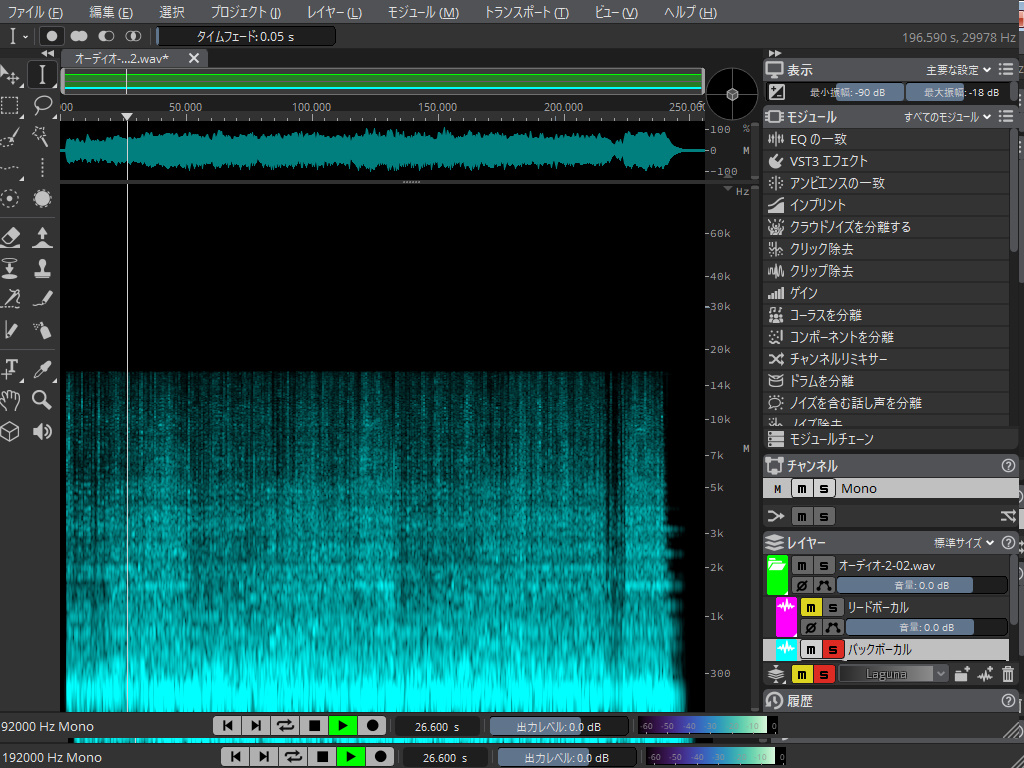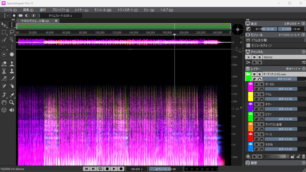 この波長は紫がリードボーカル(歌声)で水色がバックボーカル(演奏)に分離された視覚波長ですね。