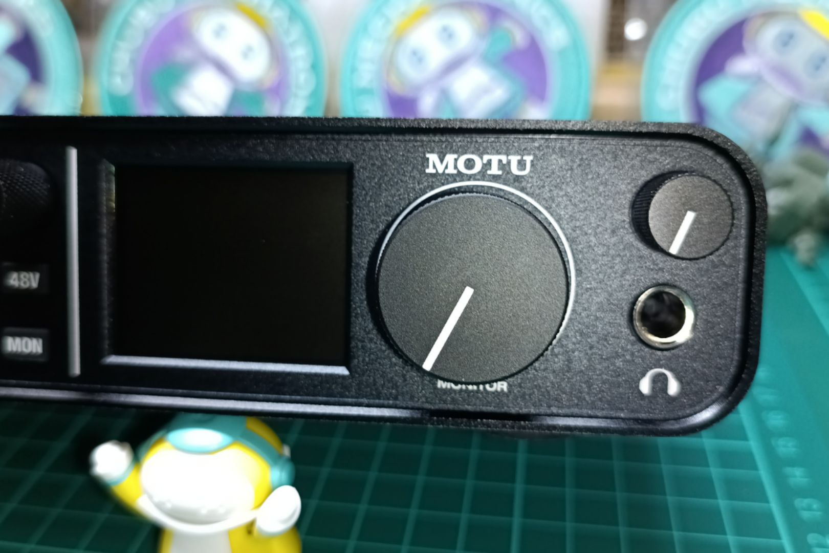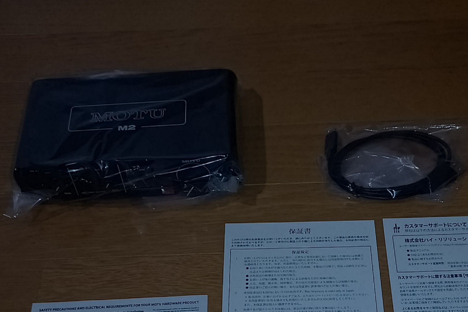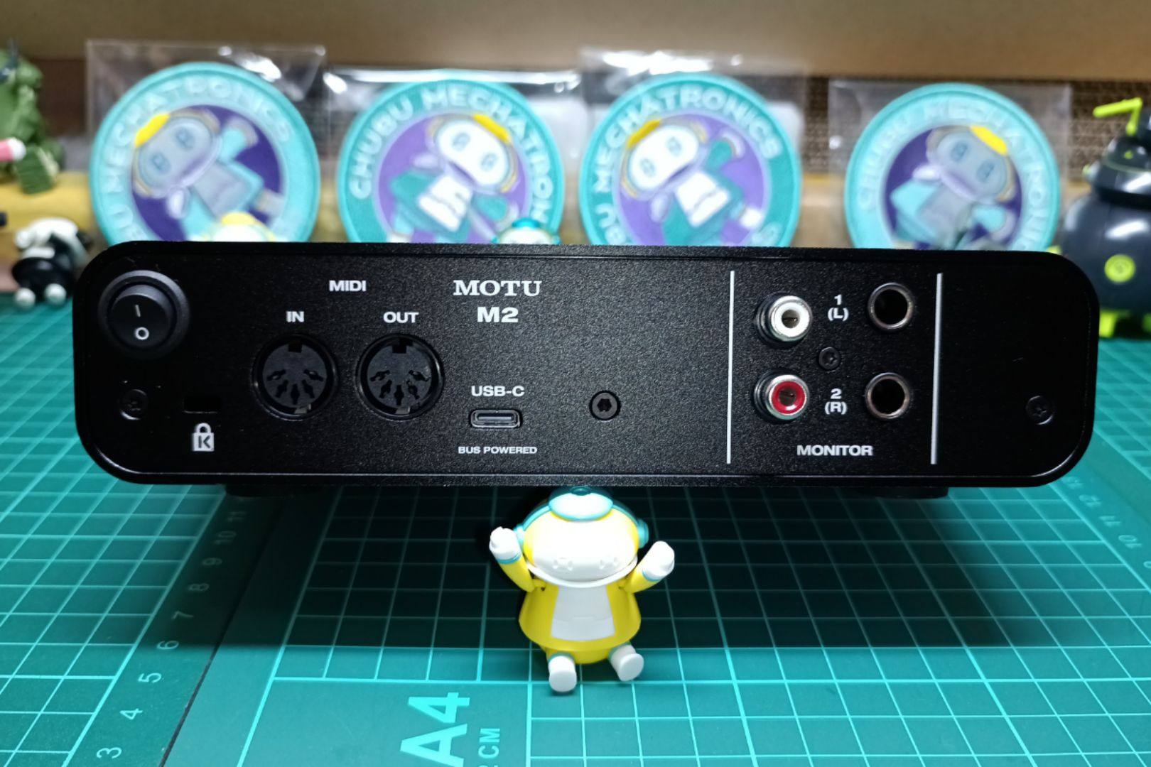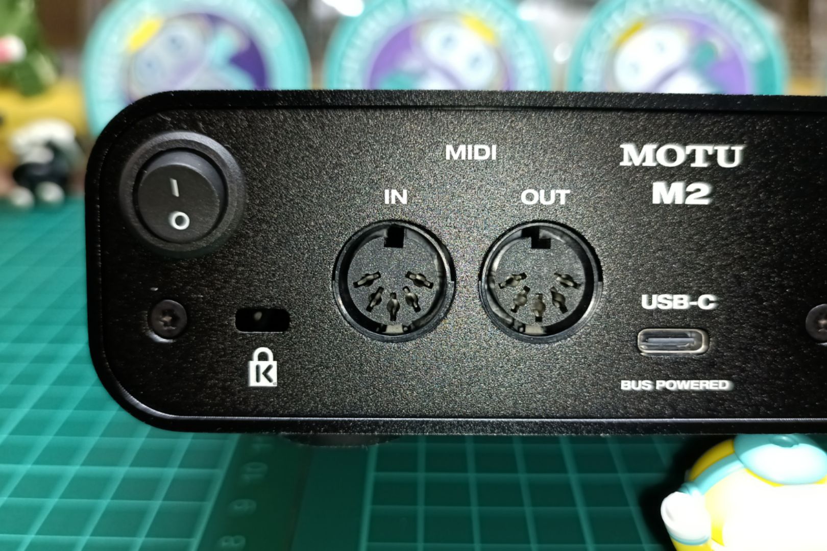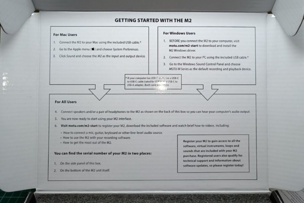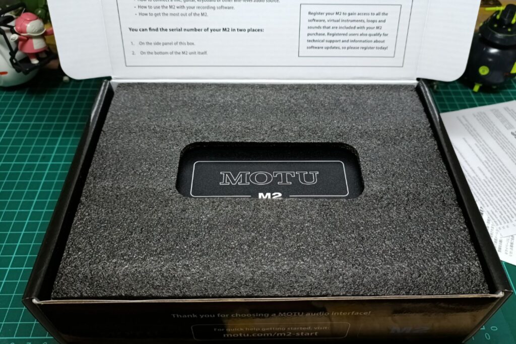 MOTU M2のロゴが見えるように窓があります。