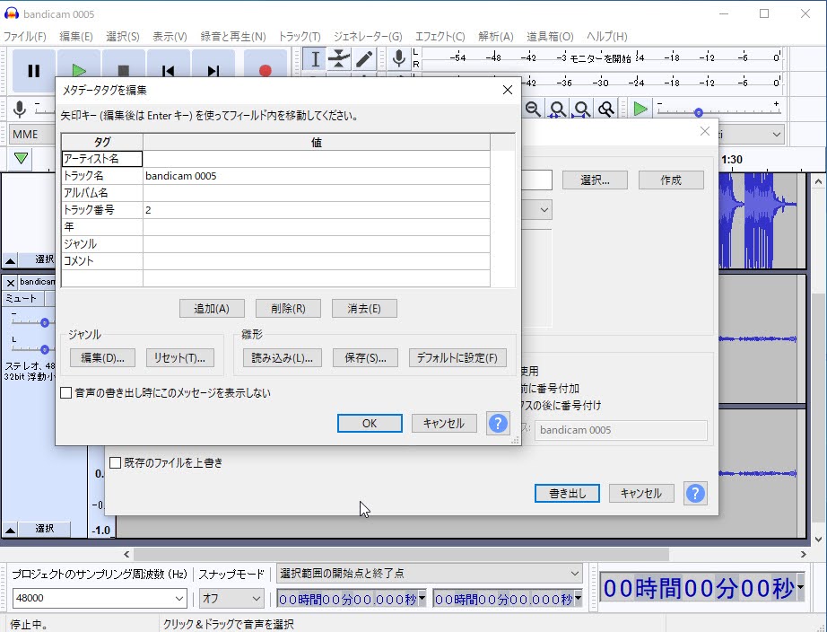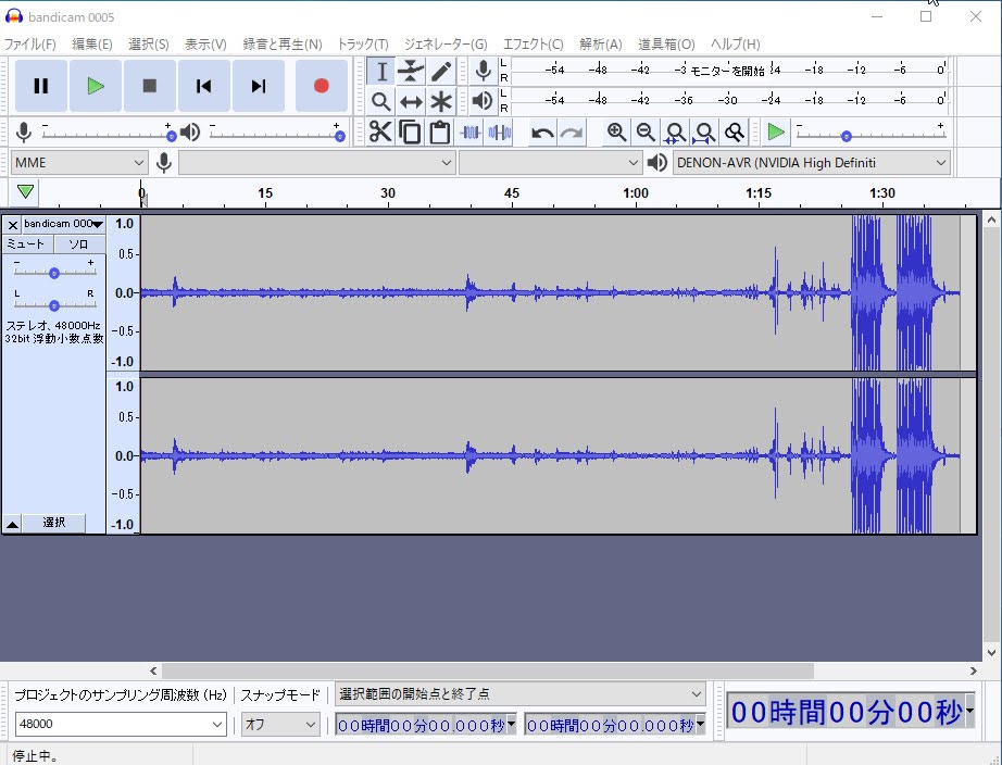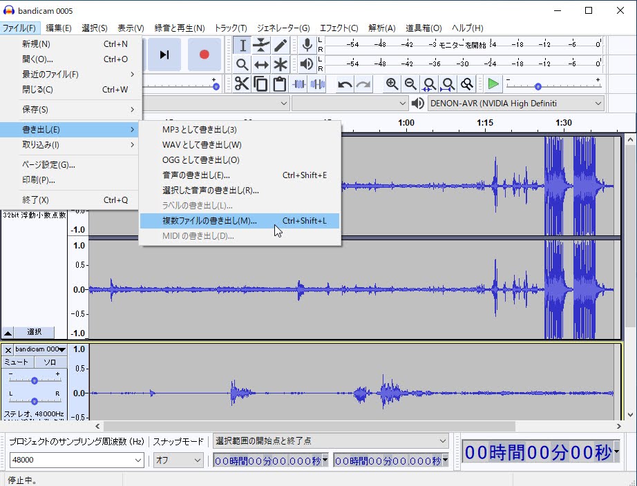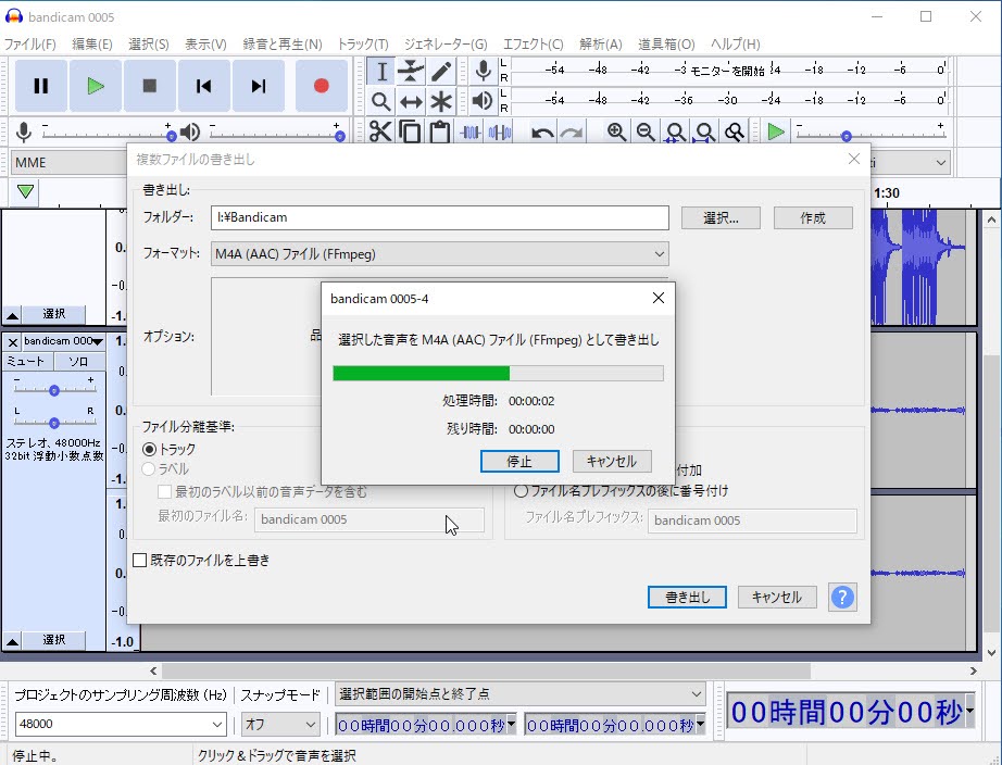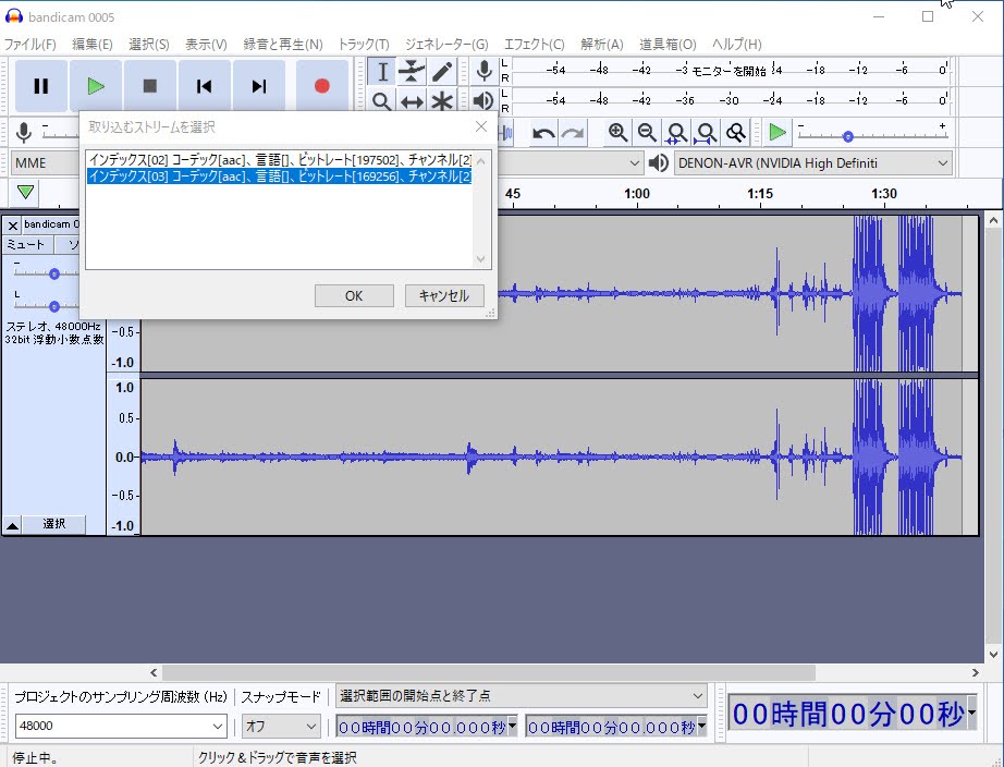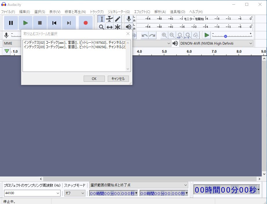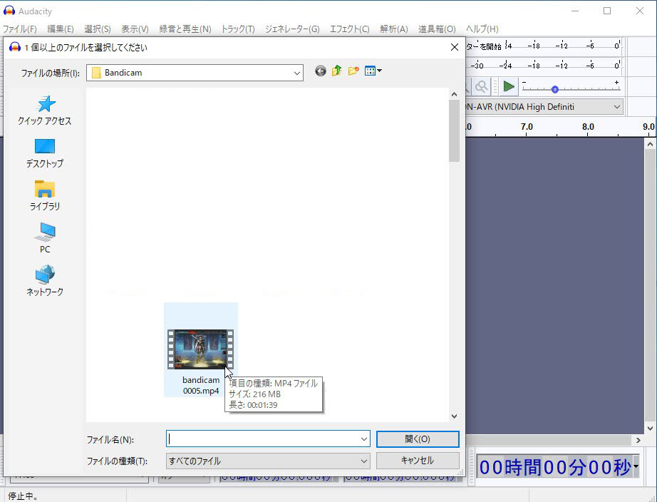最後に、「Audacity」にて「ffmpeg」を読み込んであげます。