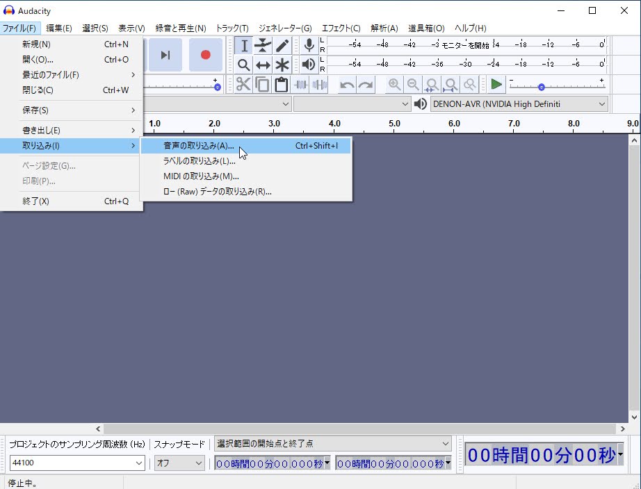 「ファイル」→「取り込み」→「音声の取り込み」