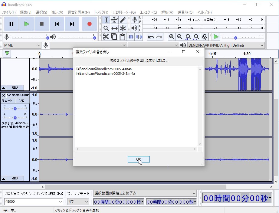 これで2つの音源を同時に、別々のファイルとして保存出来ます。