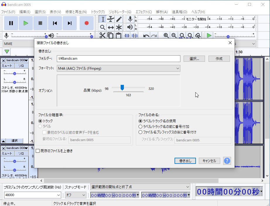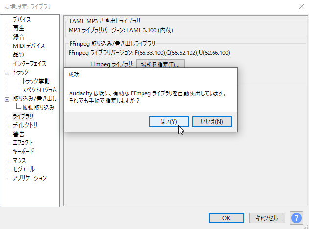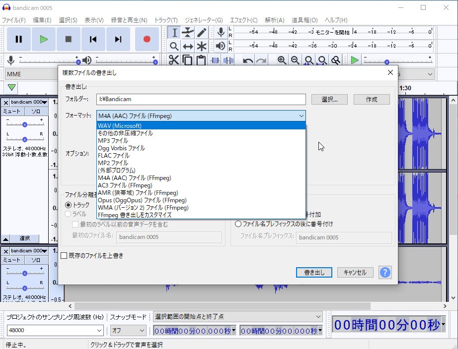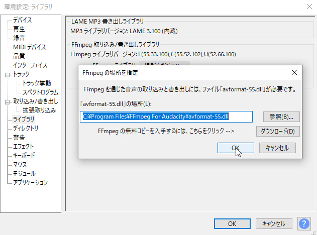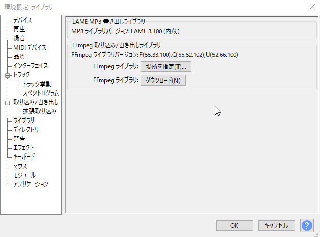 Audacityでffmpegを読み込む