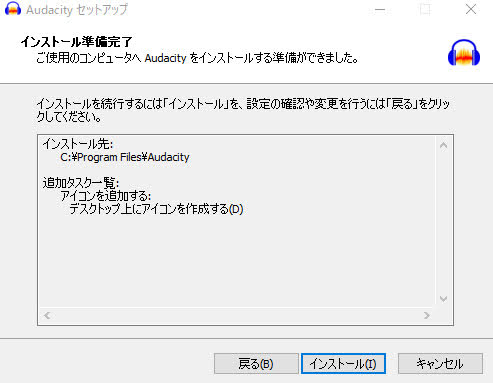 音源編集ソフト「Audacity」をダウンロードしてインストールします。