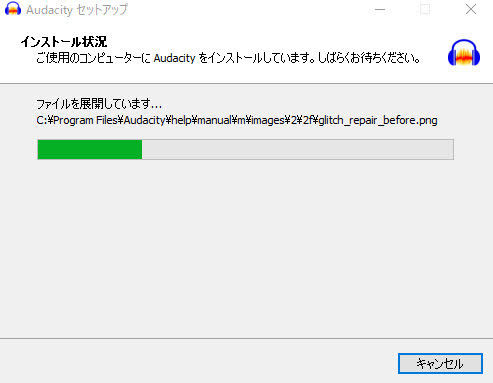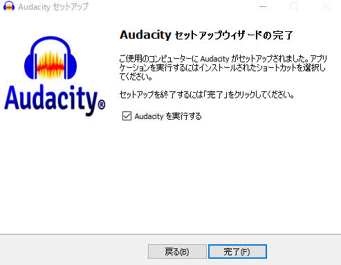 「Audacity」の文字が至る所に入っています。