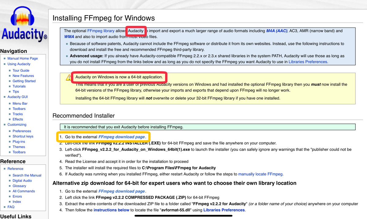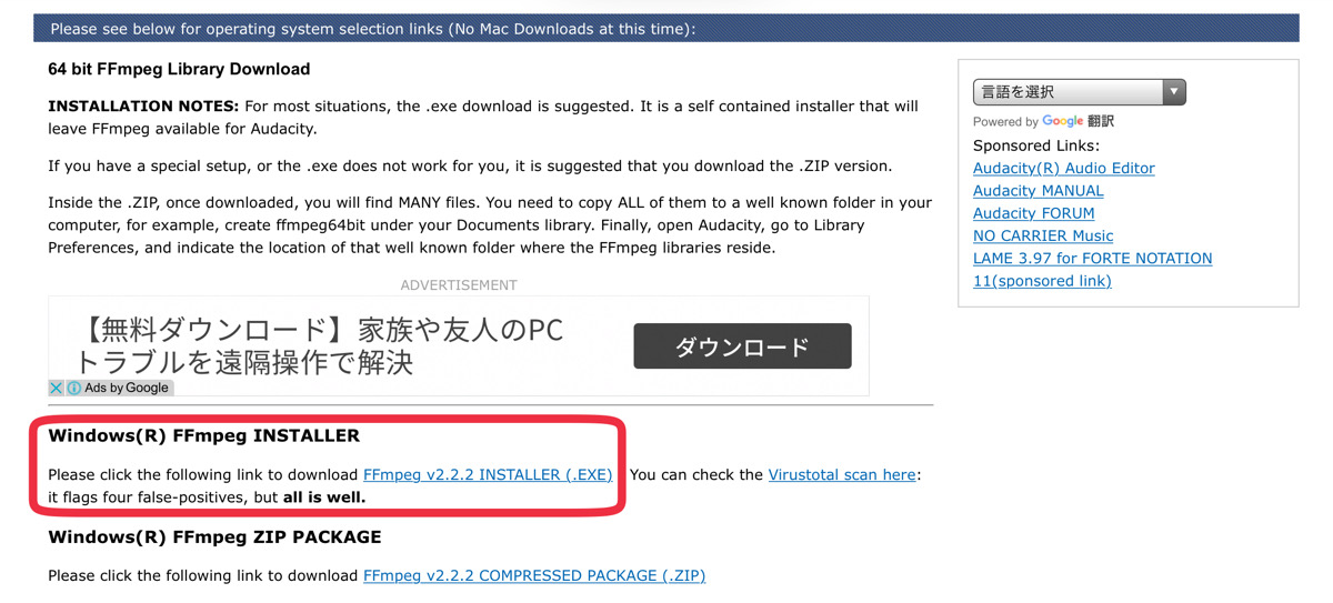 「Audacity ffmpeg」