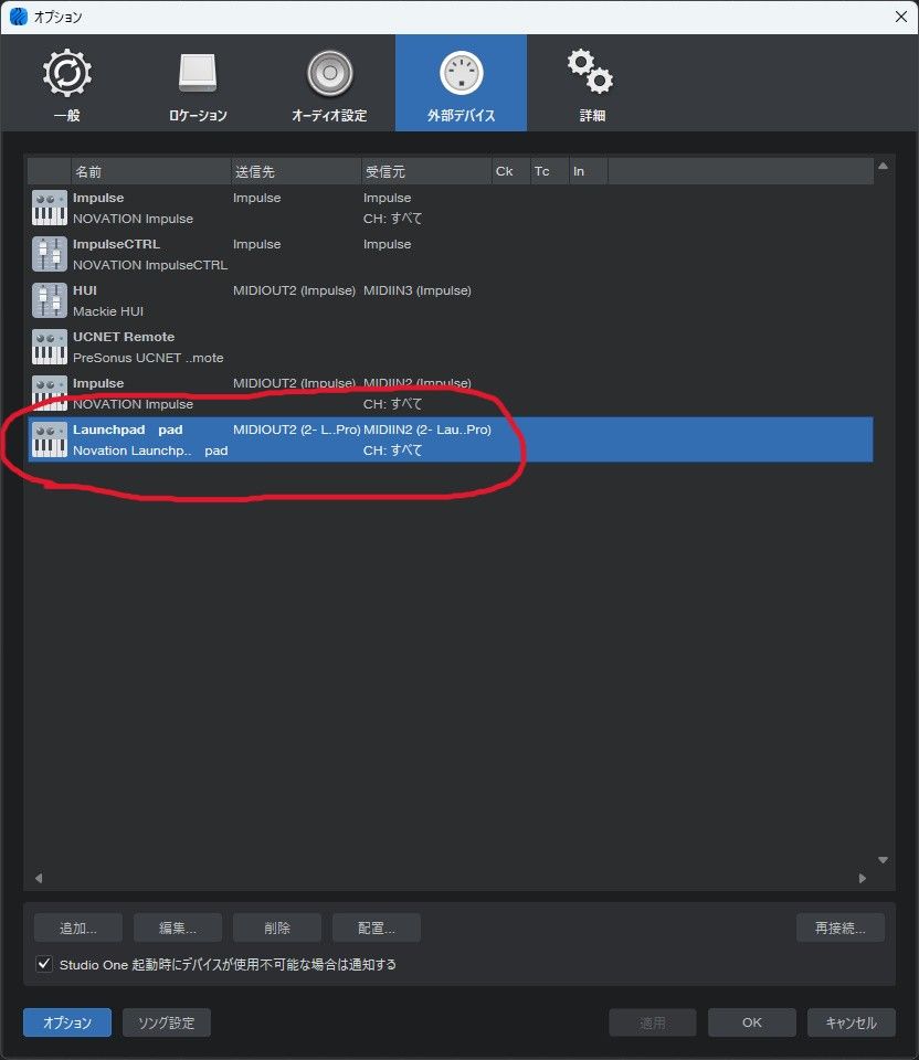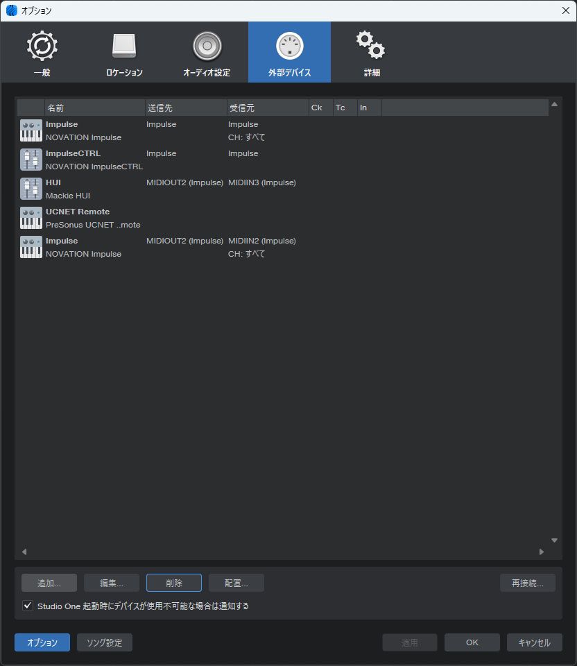 Studio oneでMIDI機器設定