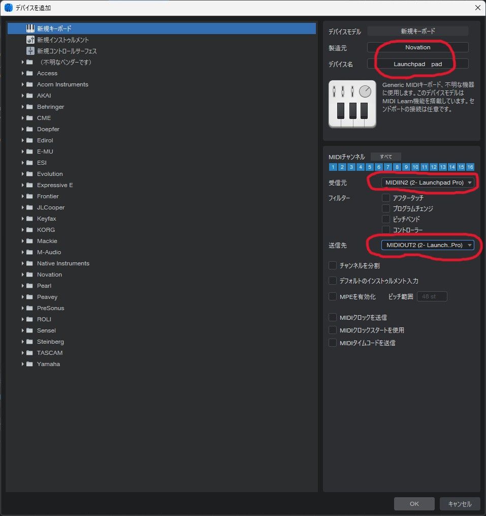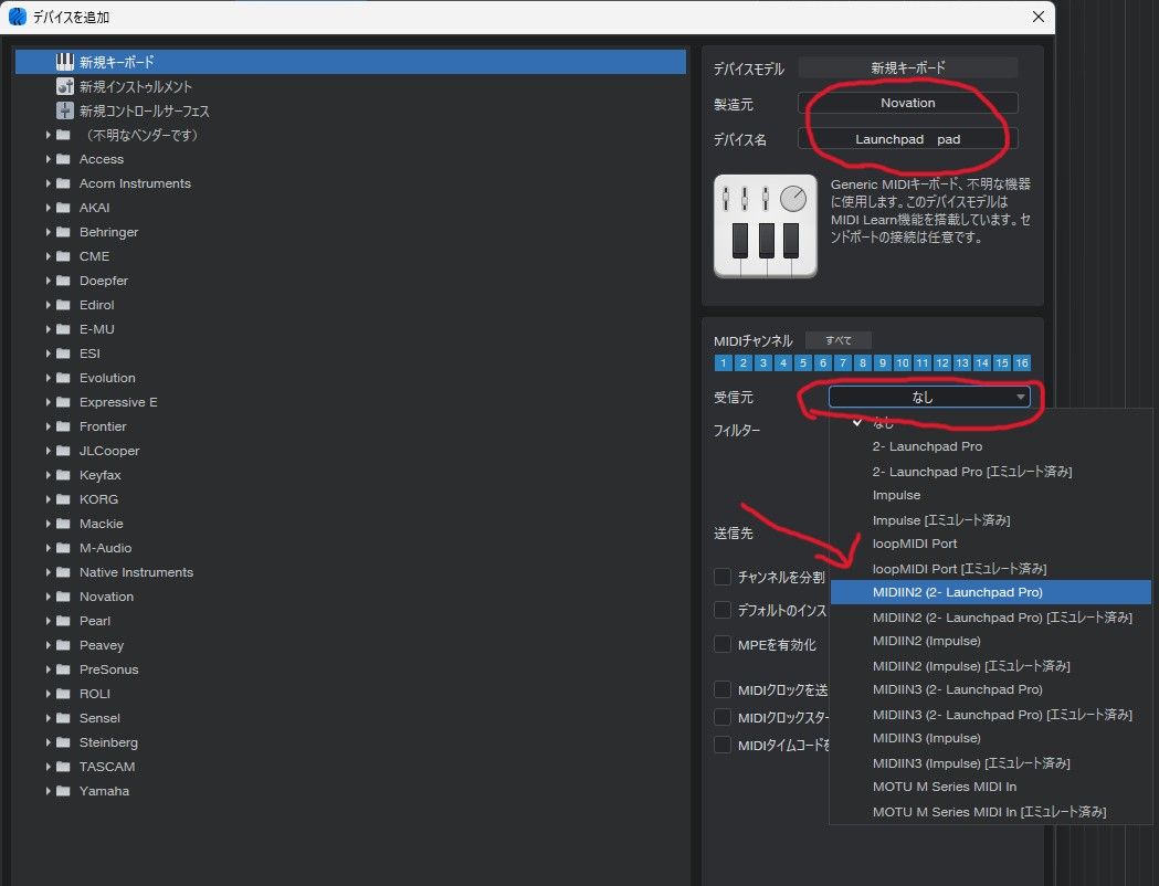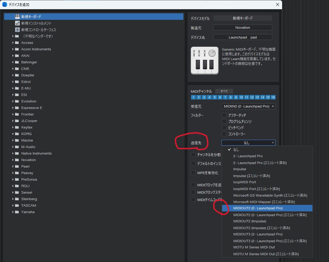 Studio one Pro7でMIDIパッド(LaunchPadPro MK1)の設定とアサインに再チャレンジ