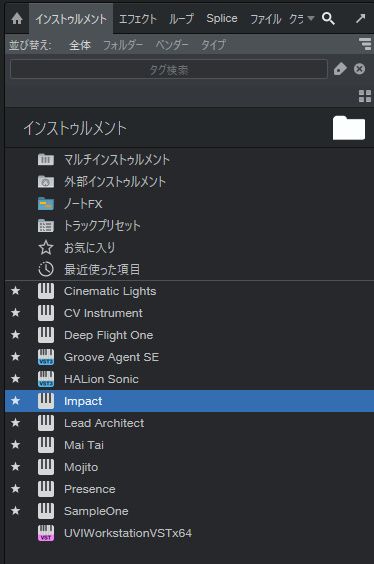 ドラム操作ができる「Impact」をトラックに追加します。