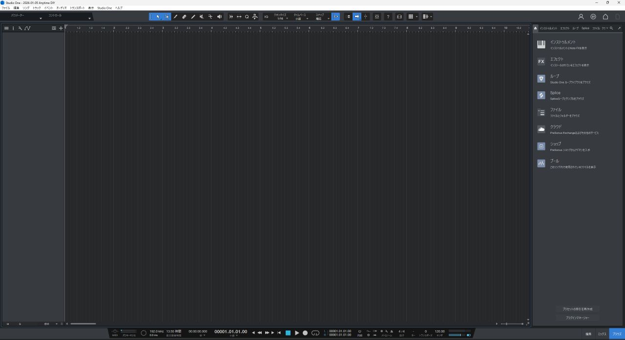 DAWを立ち上げた画面です。