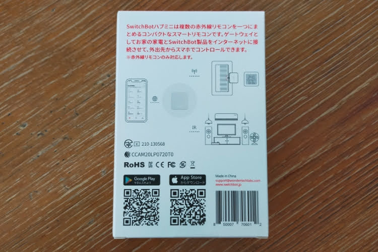そして、ワタクシは勘違いしていたのですが、スマホからリモコン操作の電波を飛ばすのではなく、「ハブミニ」からリコモン電波を飛ばします。