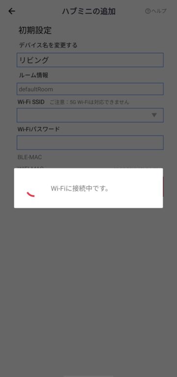 無事に登録できると、本体のハブミニを、インターネットに接続する画面になります。