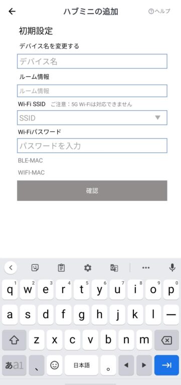 ルーターなどのWi-Fi機器のSSIDとパスワードを入力します。