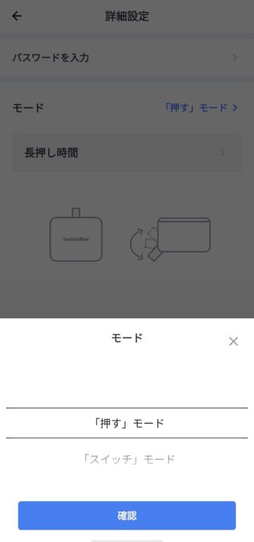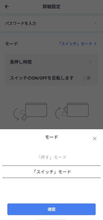 「押す」か「スイッチ」モードの2種類です。
