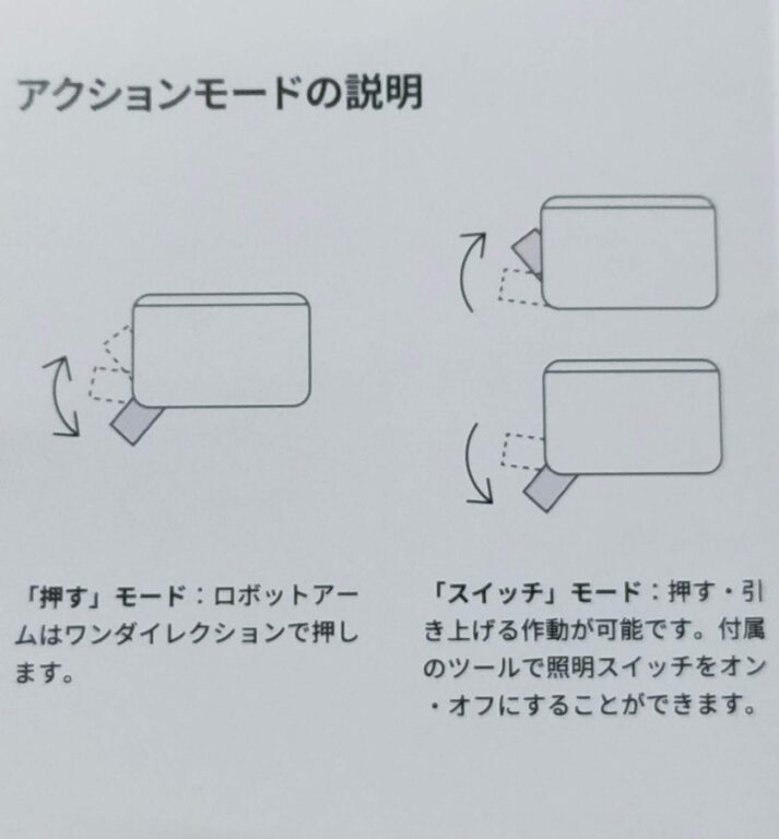 「押す」モードだと、壁に付いてるシーソー型の照明スイッチだと、使えなくは無いですが、この「ボット」が、2個必要になります。