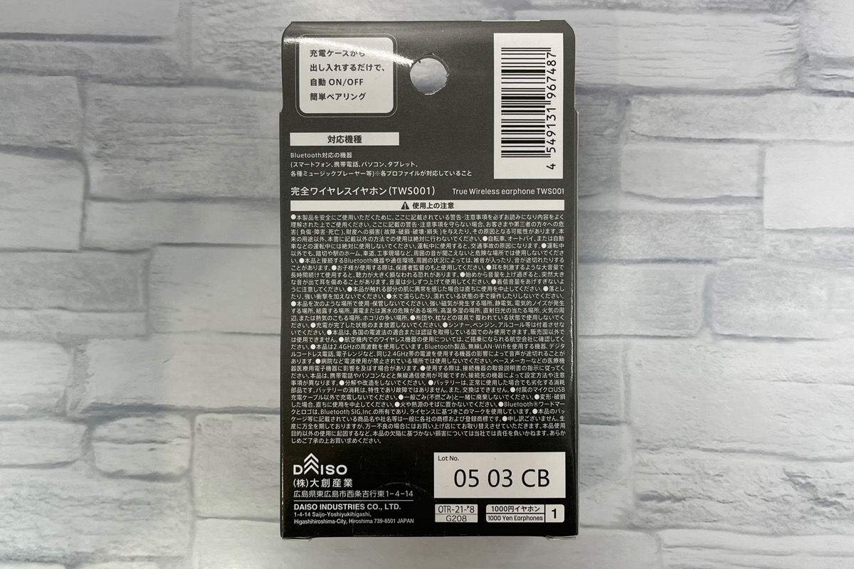 ダイソーの500円Bluetoothイヤホンは、本当にイヤホンか?ってぐらいの情報量しか書いてません。取説にも記載なしです。