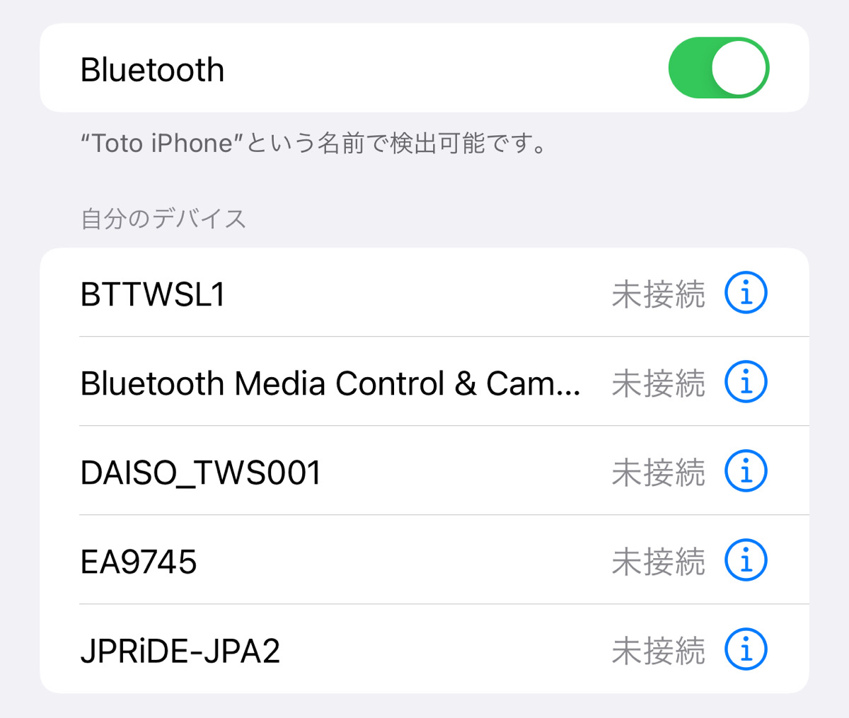 名前は、Bluetooth接続時に表示される名前です。