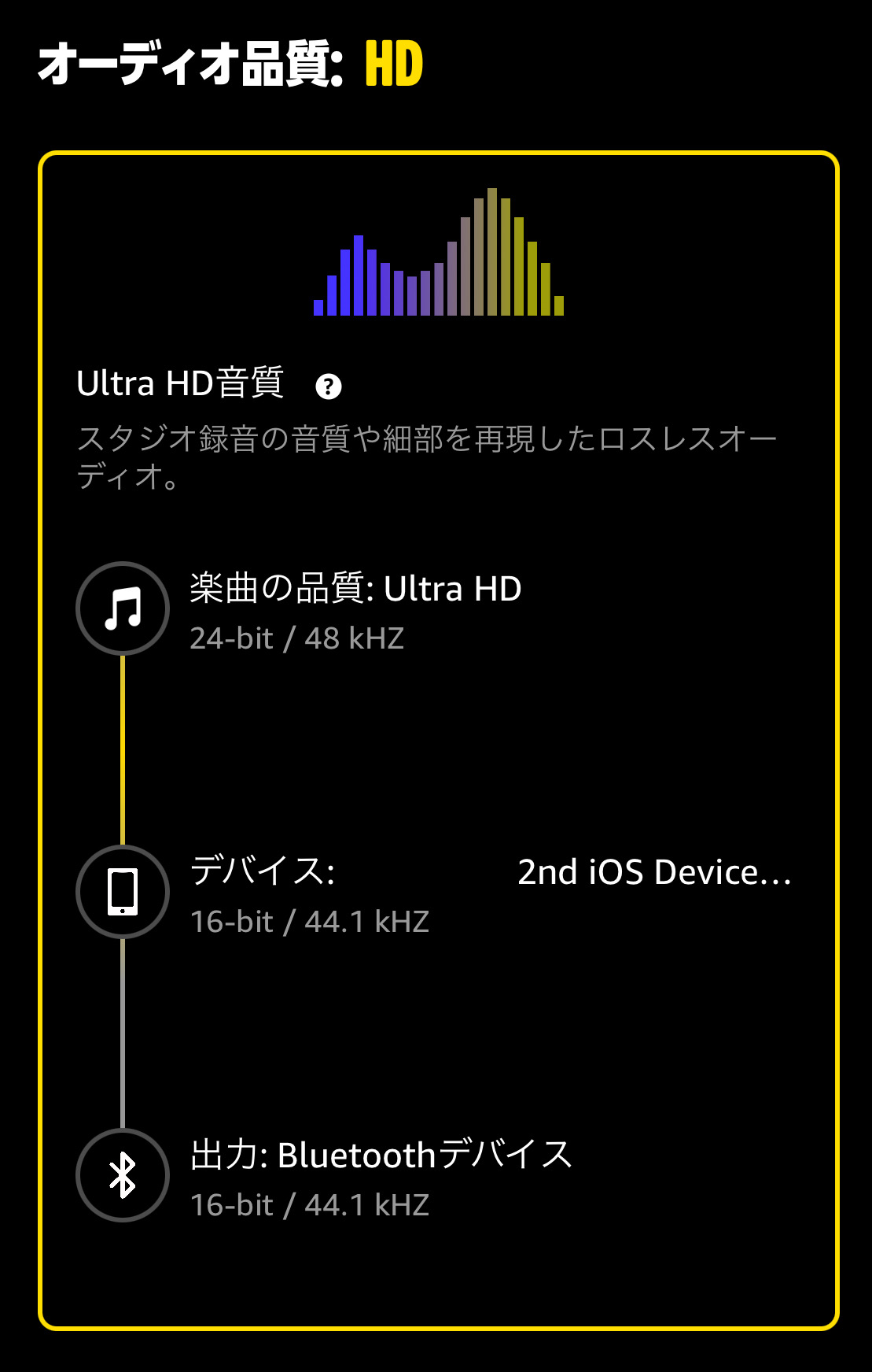 「ULTRA HD」となってますが、再生状態で確認すると、全てのイヤホンにおいて