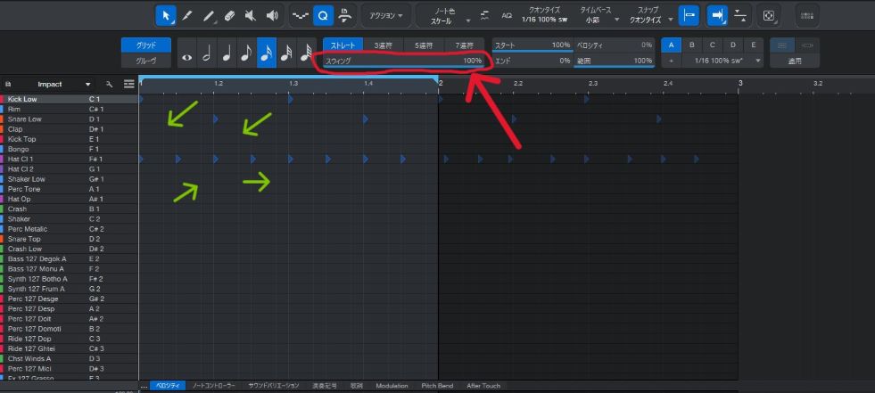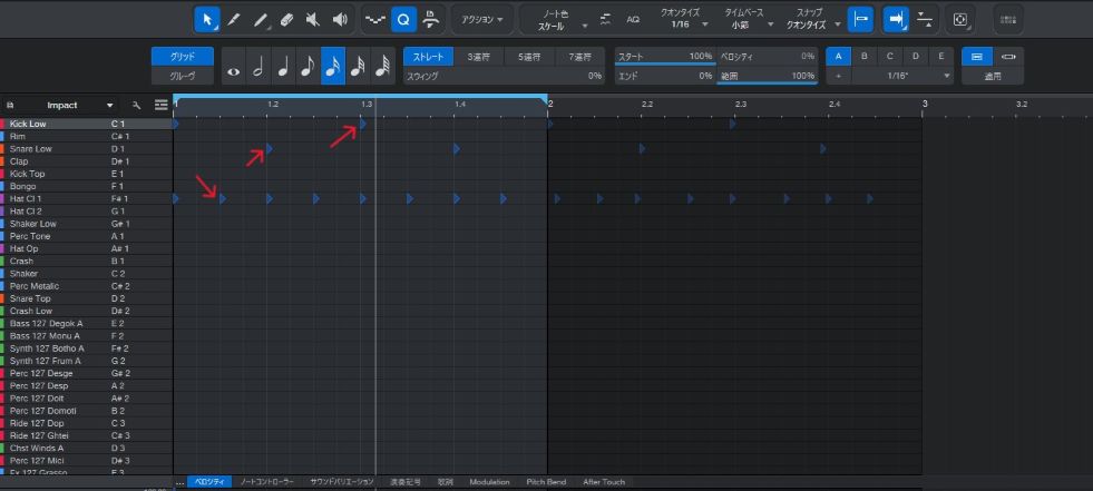 ワタクシの打ち込みは、最初からすべてグリッドに置いていたからです。