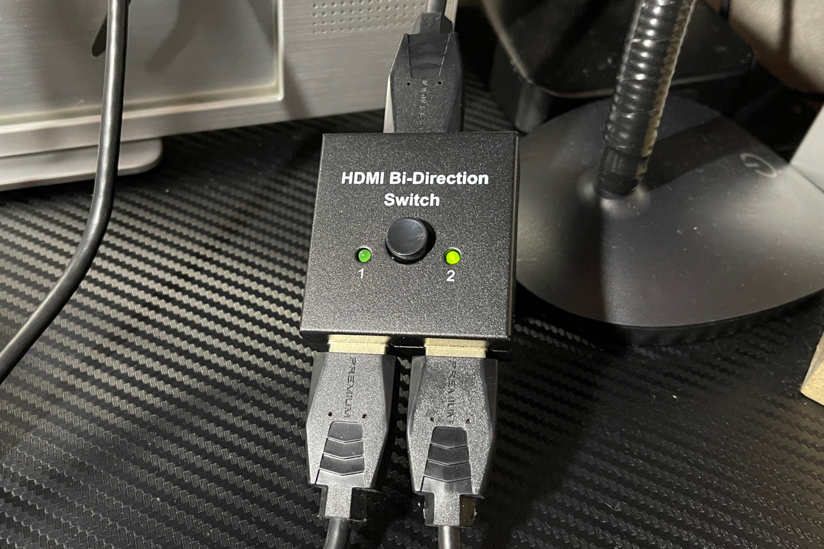 Displayportの入力映像が優先されるのか、先に入力があった映像入力が優先されるのか不明ですが、パソコンの電源を入れた状態でHDMIセレクターを「1」に変更しても、メインモニターはパソコン画面のままでした。