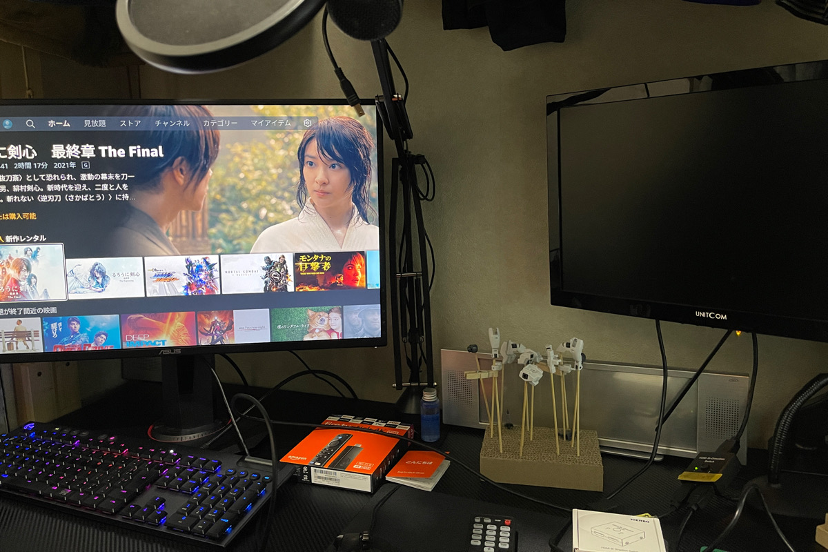 メインモニターに 「Fire TV Stick 4K Max」を出力。パソコンは起動したままです。