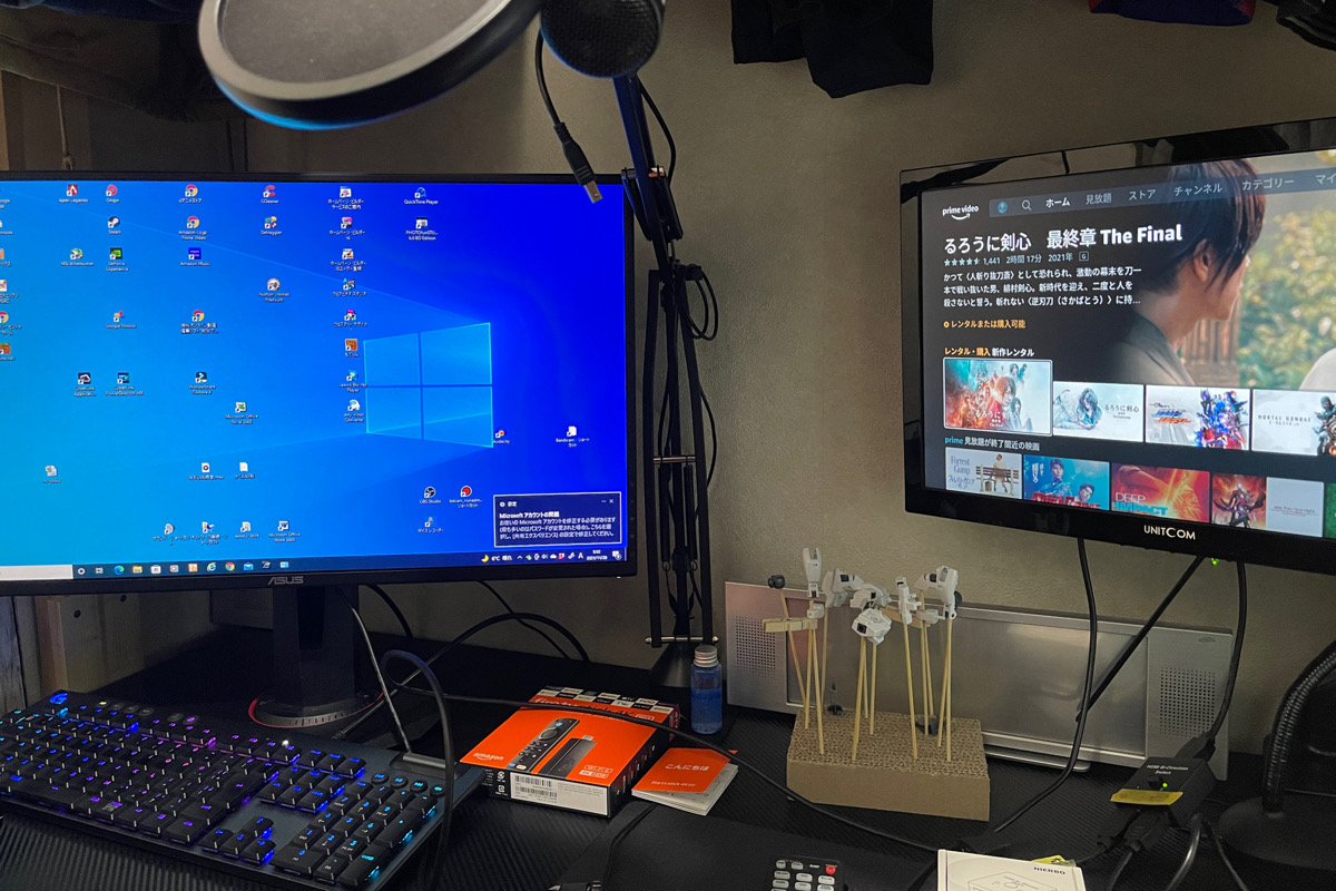 サブモニターに 「Fire TV Stick 4K Max」の映像を流しつつ、メインモニターはパソコン作業も可。